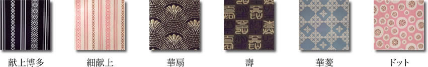 在各式圖紋中,最具代表性的就是在江戶時代,黑田長政曾經獻給幕府、有著「除災家盛」意義的「獻上博多」。除此之外,也有許多如下圖的常見圖紋。